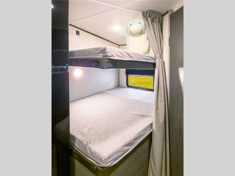 Sleeps 6 Length 21 ft 5 in Ext Height 9 ft 11 in Hitch Weight 472 lbs Dry Weight 2844 lbs Cargo Capacity 1150 lbs Fresh Water Capacity 21 gals Grey Water Capacity 34 gals Black Water Capacity 34 gals Furnace BTU 20000 btu Number Of Bunks 3 Available Beds RV Queen Refrigerator Type 12V Refrigerator Size 3.3 cu ft Cooktop Burners 2 Shower Size 30" x 36" Number of Awnings 1 AC BTU 8000 btu Awning Info 8' Power Axle Count 1 Shower Type Standard Similar Floorplans