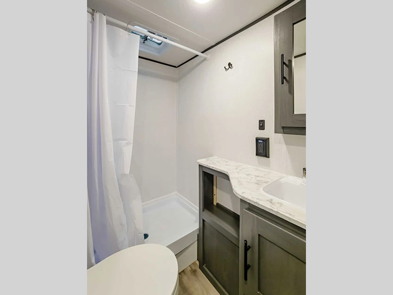 You will stay comfortable with the 8,000 BTU roof-mounted A/C and 20,000 BTU furnace, and there are stylish pleated night shades to make your space feel more like home. Each model is constructed on a wide body chassis and includes tinted safety glass windows and a 6' 4" interior height so you can easily move about.