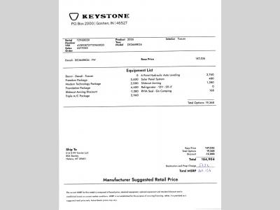 D&D RV Center, LLC is not responsible for any misprints, typos, or errors found in our website pages. Any price listed has no other surprise fees or charges added to it (bet you didn't expect that!). Manufacturer specifications and features may be used. We take pictures of each individual unit in our inventory.  We use manufacturer videos and virtual tours on our website.  Please contact us @406-442-8542 for availability as our inventory changes rapidly. All calculated payments are an estimate only and do not constitute a commitment that financing or a specific interest rate or term is available.