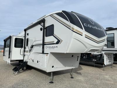 The Keystone Cougar Half-Ton fifth wheel and travel trailers are known as one of America's favorites for a reason! Some of those reasons are the exclusive features that come from Keystone, like the Winegard Air 360+ omni-directional rooftop antenna, the in-floor heating ducts, and the HyperCore composite wall construction with Vixen Fibrogloss high-gloss finish. The Cougar Half-Ton has a Climate Guard protection package with heat-deflecting white sidewalls, two roof attic vents, PEX plumbing and more to enjoy four season camping. Inside, you'll love the dimmable lighting, night roller shades throughout, shower skylight, and bedside USB outlets to keep your electronics charged.