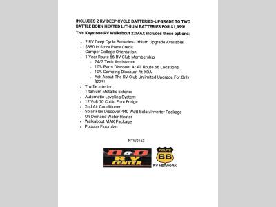 D&D RV Center, LLC is not responsible for any misprints, typos, or errors found in our website pages. Any price listed has no other surprise fees or charges added to it (bet you didn't expect that!). Manufacturer specifications and features may be used. We take pictures of each individual unit in our inventory.  We use manufacturer videos and virtual tours on our website.  Please contact us @406-442-8542 for availability as our inventory changes rapidly. All calculated payments are an estimate only and do not constitute a commitment that financing or a specific interest rate or term is available.
