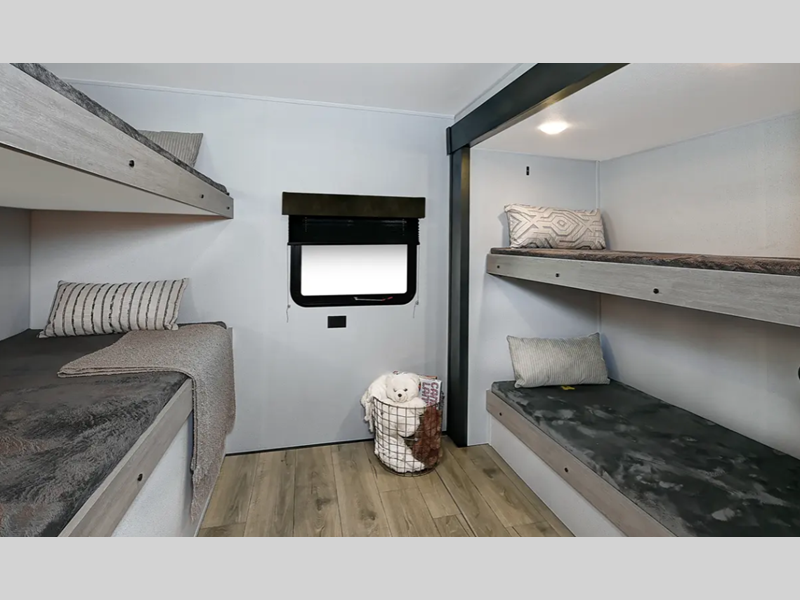 Sleeps 8 Slides 1 Length 33 ft 5 in Ext Width 8 ft Ext Height 10 ft 11 in Hitch Weight 785 lbs GVWR 8023 lbs Dry Weight 6523 lbs Cargo Capacity 1500 lbs Fresh Water Capacity 43 gals Grey Water Capacity 35 gals Black Water Capacity 35 gals Number Of Bunks 4 Available Beds RV Queen Refrigerator Type Stainless 12V Refrigerator Size 10 cu ft Cooktop Burners 3 Shower Size 40" Number of Awnings 1 LP Tank Capacity 20 lbs Water Heater Capacity 6 gal Water Heater Type GE Gas/Electric AC BTU 13500 btu Awning Info 15' Axle Count 2 Shower Type Standard Similar Floorplans