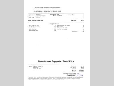 D&D RV Center, LLC is not responsible for any misprints, typos, or errors found in our website pages. Any price listed has no other surprise fees or charges added to it (bet you didn't expect that!). Manufacturer specifications and features may be used. We take pictures of each individual unit in our inventory. We use manufacturer videos and virtual tours on our website. Please contact us @406-442-8542 for availability as our inventory changes rapidly. All calculated payments are an estimate only and do not constitute a commitment that financing or a specific interest rate or term is available.