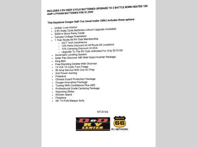 D&D RV Center, LLC is not responsible for any misprints, typos, or errors found in our website pages. Any price listed has no other surprise fees or charges added to it (bet you didn't expect that!). Manufacturer specifications and features may be used. We take pictures of each individual unit in our inventory. We use manufacturer videos and virtual tours on our website. Please contact us @406-442-8542 for availability as our inventory changes rapidly. All calculated payments are an estimate only and do not constitute a commitment that financing or a specific interest rate or term is available.